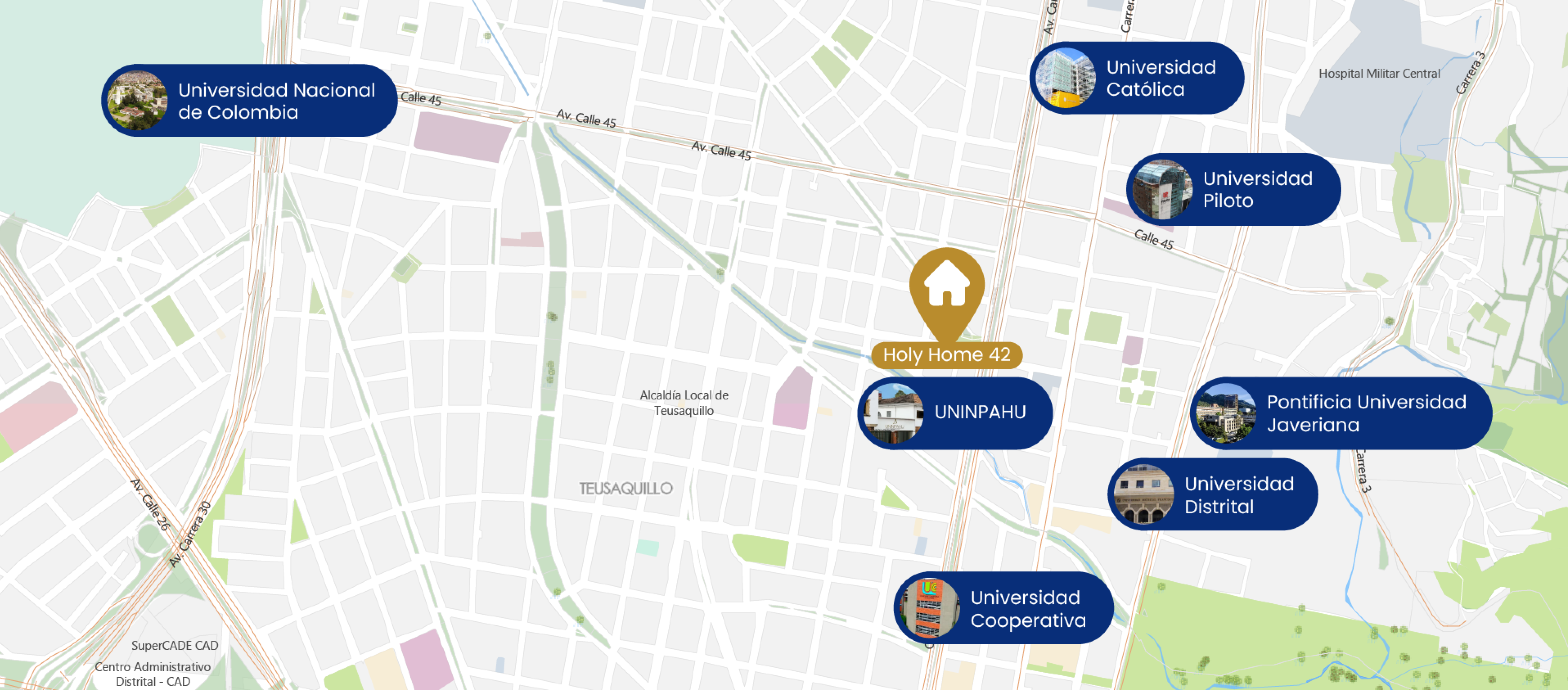 Si quieres estudiar en Bogotá, necesitas un lugar para vivir, estudiar, descansar y relajarte. En la Residencia Universitaria y Profesionales HOLY HOME 42, ofrecemos una casa confortable con 21 habitaciones privadas diseñadas para una estancia a largo plazo y gran variedad de comodidades, para hacer de tu vida universitaria y estadía en Bogotá, una experiencia inolvidable.
